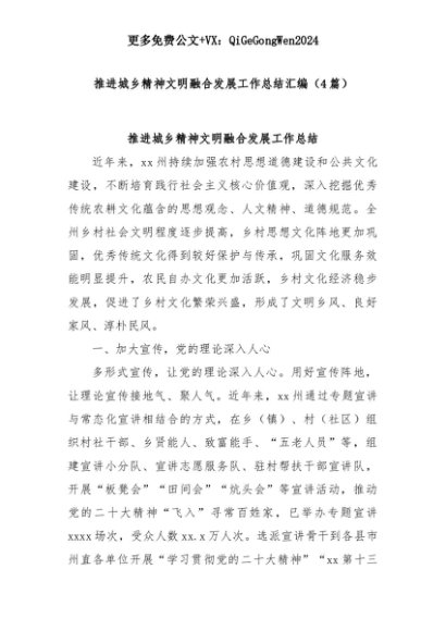 【七哥公文】2025年:(4篇)推进城乡精神文明融合发展工作总结汇编+更多免费公文+VX:QiGeGongWen2024+更多免费公文+VX:QiGeGongWen2024