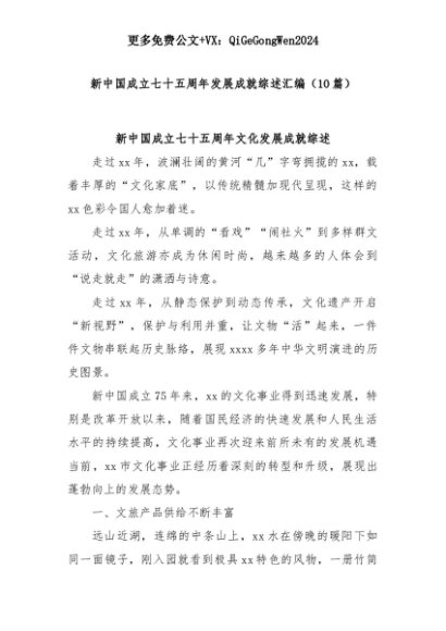 【七哥公文】2025年:(10篇)新中国成立七十五周年发展成就综述汇编+更多免费公文+VX:QiGeGongWen2024+更多免费公文+VX:QiGeGongWen2024
