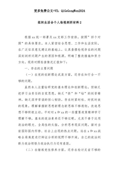 【七哥公文】2025年:组织生活会个人检视剖析材料2+更多免费公文+VX:QiGeGongWen2024+更多免费公文+VX:QiGeGongWen2024