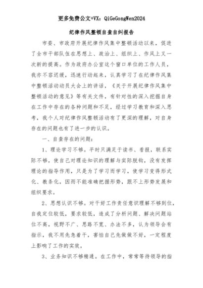 【七哥公文】2025年:纪律作风整顿自查自纠报告+更多免费公文+VX:QiGeGongWen2024+更多免费公文+VX:QiGeGongWen2024