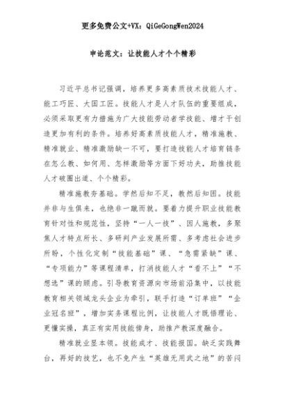 【七哥公文】2025年:申论范文:让技能人才个个精彩+更多免费公文+VX:QiGeGongWen2024+更多免费公文+VX:QiGeGongWen2024