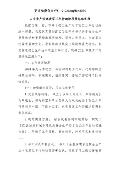 【七哥公文】2025年:安全生产治本攻坚三年行动阶段性总结汇报+更多免费公文+VX:QiGeGongWen2024+更多免费公文+VX:QiGeGongWen2024