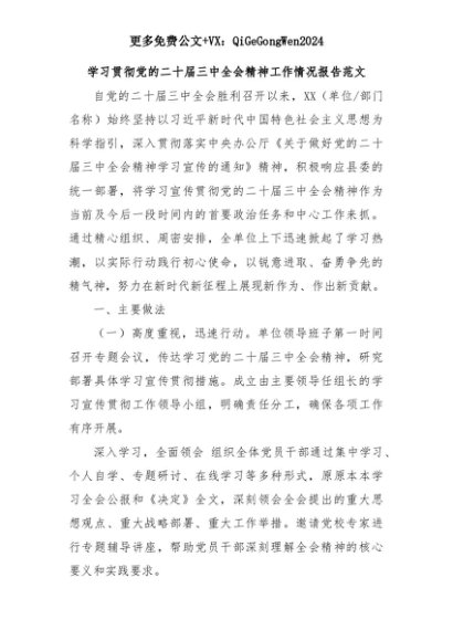 【七哥公文】2025年:学习贯彻党的二十届三中全会精神工作情况报告范文+更多免费公文+VX:QiGeGongWen2024+更多免费公文+VX:QiGeGongWen2024