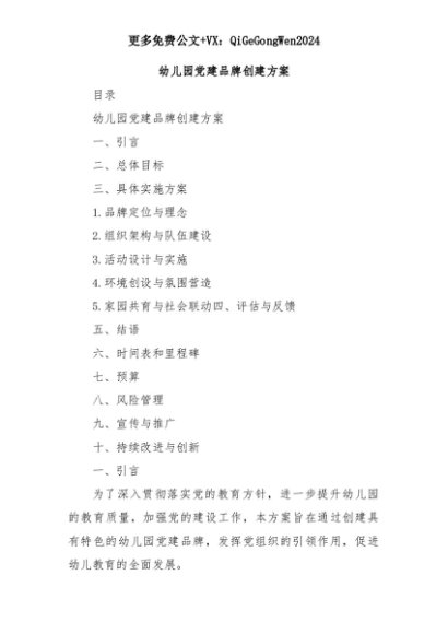 【七哥公文】2025年:幼儿园党建品牌创建方案+更多免费公文+VX:QiGeGongWen2024+更多免费公文+VX:QiGeGongWen2024