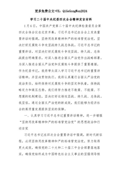 【七哥公文】2025年:学习二十届中央纪委四次全会精神发言材料+更多免费公文+VX:QiGeGongWen2024+更多免费公文+VX:QiGeGongWen2024