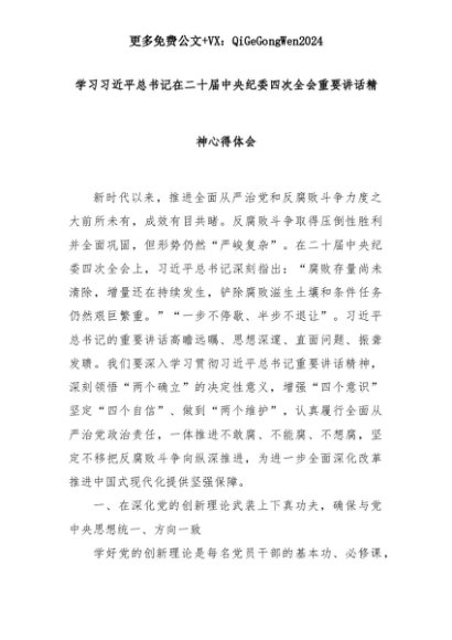 【七哥公文】2025年:学习习近平总书记在二十届中央纪委四次全会重要讲话精神心得体会+更多免费公文+VX:QiGeGongWen2024+更多免费公文+VX:QiGeGongWen2024