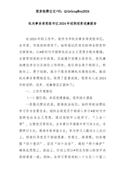 【七哥公文】2025年:机关事务局党组书记2024年述职述责述廉报告+更多免费公文+VX:QiGeGongWen2024+更多免费公文+VX:QiGeGongWen2024