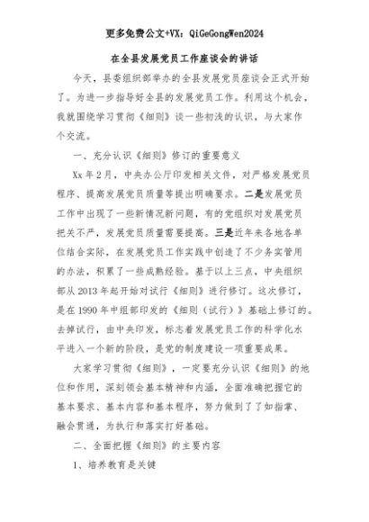 【七哥公文】2025年:在全县发展党员工作座谈会的讲话+更多免费公文+VX:QiGeGongWen2024+更多免费公文+VX:QiGeGongWen2024