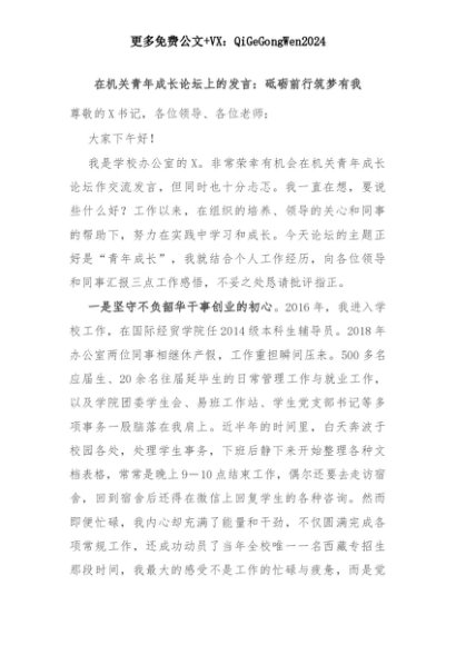 【七哥公文】2025年:在机关青年成长论坛上的发言:砥砺前行筑梦有我+更多免费公文+VX:QiGeGongWen2024+更多免费公文+VX:QiGeGongWen2024