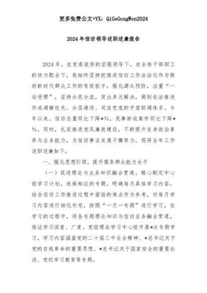 【七哥公文】2025年:2024年信访领导述职述廉报告+更多免费公文+VX:QiGeGongWen2024+更多免费公文+VX:QiGeGongWen2024