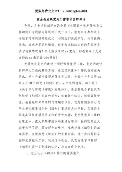 【七哥公文】2025年:在全县发展党员工作培训会的讲话+更多免费公文+VX:QiGeGongWen2024+更多免费公文+VX:QiGeGongWen2024