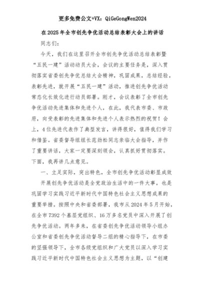【七哥公文】2025年:在2025年全市创先争优活动总结表彰大会上的讲话+更多免费公文+VX:QiGeGongWen2024+更多免费公文+VX:QiGeGongWen2024