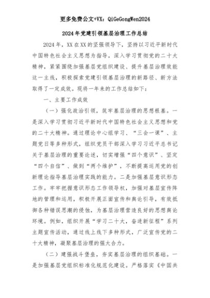 【七哥公文】2025年:2024年党建引领基层治理工作总结+更多免费公文+VX:QiGeGongWen2024+更多免费公文+VX:QiGeGongWen2024