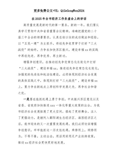 【七哥公文】2025年:在2025年全市经济工作务虚会上的讲话+更多免费公文+VX:QiGeGongWen2024+更多免费公文+VX:QiGeGongWen2024
