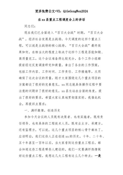 【七哥公文】2025年:在xx县重点工程调度会上的讲话+更多免费公文+VX:QiGeGongWen2024+更多免费公文+VX:QiGeGongWen2024