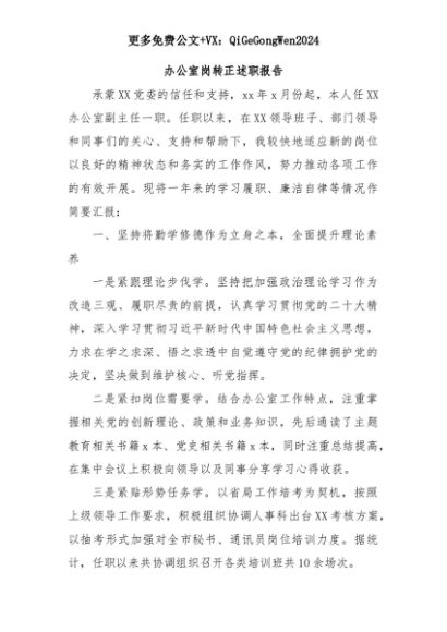 【七哥公文】2025年:办公室岗转正述职报告+更多免费公文+VX:QiGeGongWen2024+更多免费公文+VX:QiGeGongWen2024