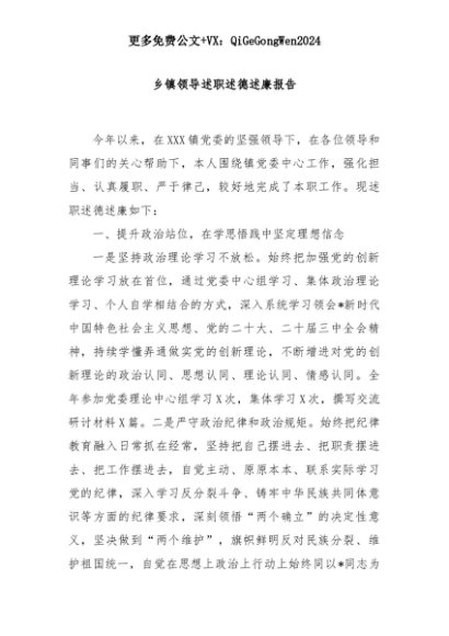 【七哥公文】2025年:乡镇领导述职述德述廉报告+更多免费公文+VX:QiGeGongWen2024+更多免费公文+VX:QiGeGongWen2024
