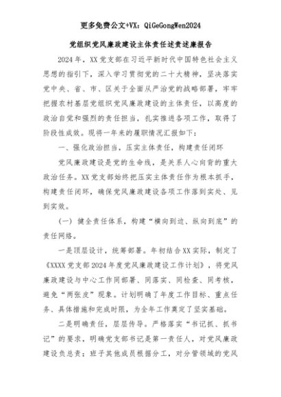 【七哥公文】2025年:党组织党风廉政建设主体责任述责述廉报告+更多免费公文+VX:QiGeGongWen2024+更多免费公文+VX:QiGeGongWen2024