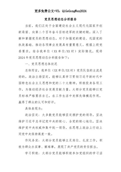 【七哥公文】2025年:党员思想动态分析报告+更多免费公文+VX:QiGeGongWen2024+更多免费公文+VX:QiGeGongWen2024