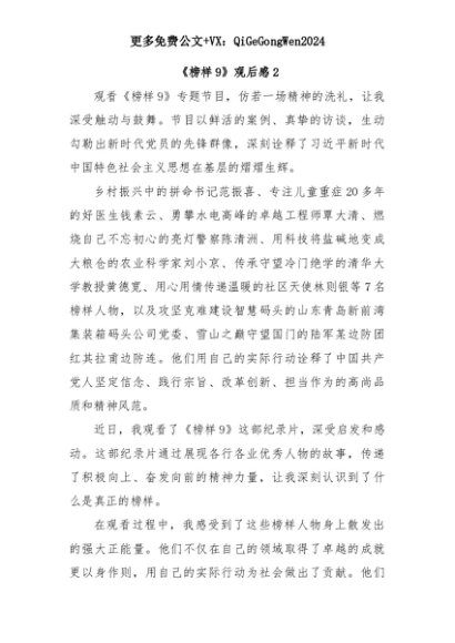 【七哥公文】2025年:《榜样9》观后感2+更多免费公文+VX:QiGeGongWen2024+更多免费公文+VX:QiGeGongWen2024