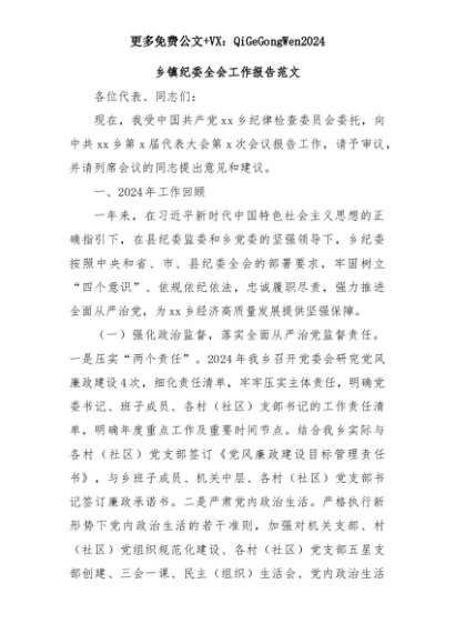 【七哥公文】2025年:乡镇纪委全会工作报告范文+更多免费公文+VX:QiGeGongWen2024+更多免费公文+VX:QiGeGongWen2024