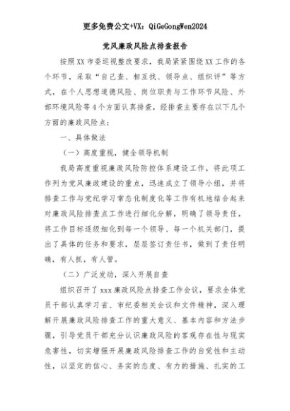 【七哥公文】2025年:党风廉政风险点排查报告+更多免费公文+VX:QiGeGongWen2024+更多免费公文+VX:QiGeGongWen2024