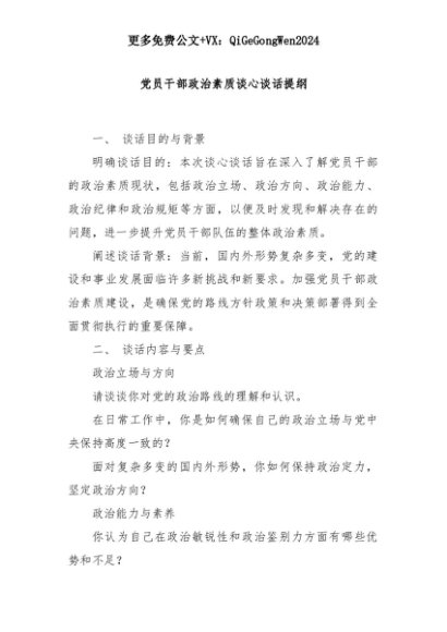 【七哥公文】2025年:党员干部政治素质谈心谈话提纲+更多免费公文+VX:QiGeGongWen2024+更多免费公文+VX:QiGeGongWen2024
