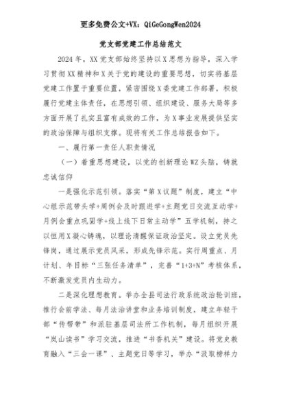 【七哥公文】2025年:党支部党建工作总结范文+更多免费公文+VX:QiGeGongWen2024+更多免费公文+VX:QiGeGongWen2024