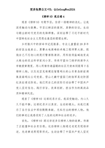 【七哥公文】2025年:《榜样9》观后感4+更多免费公文+VX:QiGeGongWen2024+更多免费公文+VX:QiGeGongWen2024