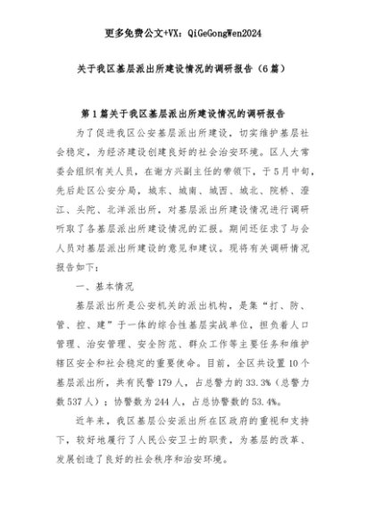 【七哥公文】2025年:(6篇)关于我区基层派出所建设情况的调研报告+更多免费公文+VX:QiGeGongWen2024+更多免费公文+VX:QiGeGongWen2024