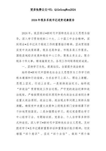 【七哥公文】2025年:2024年税务系统书记述责述廉报告+更多免费公文+VX:QiGeGongWen2024+更多免费公文+VX:QiGeGongWen2024