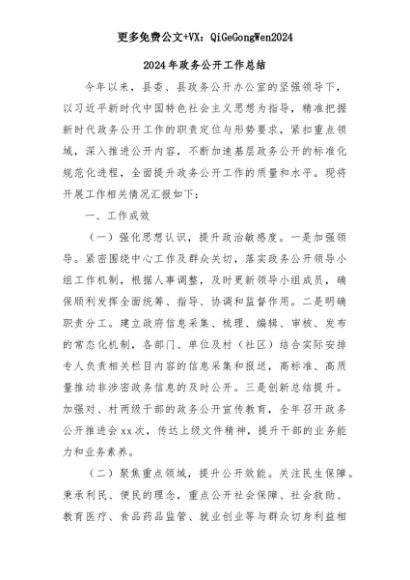 【七哥公文】2025年:2024年政务公开工作总结2+更多免费公文+VX:QiGeGongWen2024+更多免费公文+VX:QiGeGongWen2024