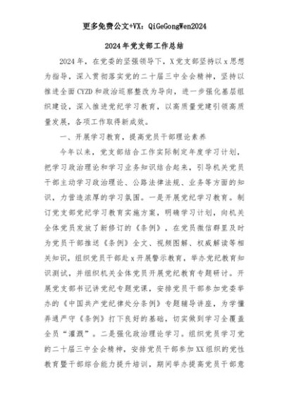 【七哥公文】2025年:2024年党支部工作总结+更多免费公文+VX:QiGeGongWen2024+更多免费公文+VX:QiGeGongWen2024