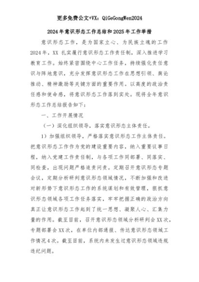 【七哥公文】2025年:2024年意识形态工作总结和2025年工作举措+更多免费公文+VX:QiGeGongWen2024+更多免费公文+VX:QiGeGongWen2024