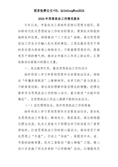【七哥公文】2025年:2024年思想政治工作情况报告+更多免费公文+VX:QiGeGongWen2024+更多免费公文+VX:QiGeGongWen2024