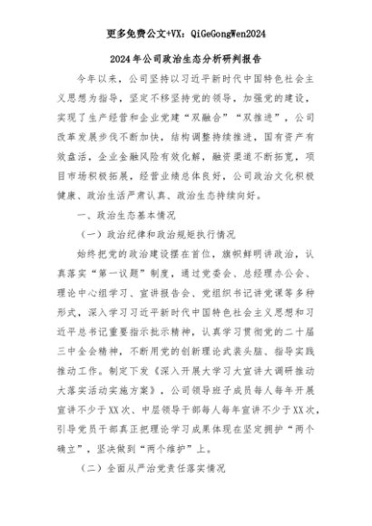 【七哥公文】2025年:2024年公司政治生态分析研判报告+更多免费公文+VX:QiGeGongWen2024+更多免费公文+VX:QiGeGongWen2024