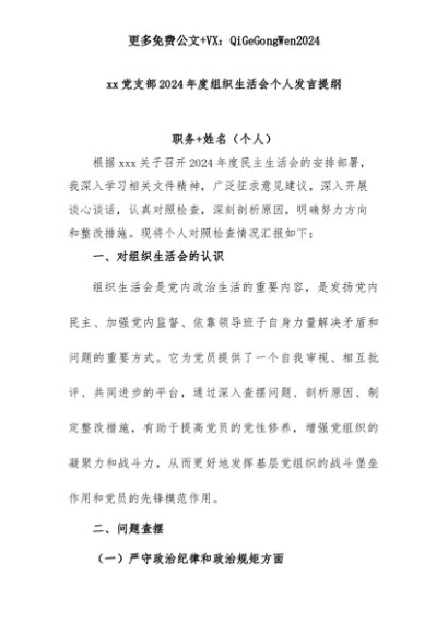 【七哥公文】2025年:xx党支部2024年度组织生活会(边疆地区)+更多免费公文+VX:QiGeGongWen2024+更多免费公文+VX:QiGeGongWen2024
