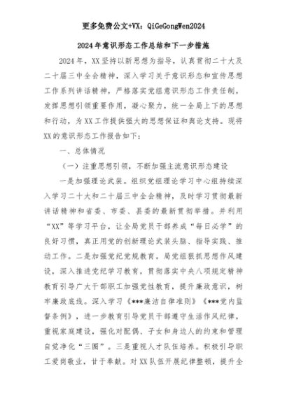 【七哥公文】2025年:2024年意识形态工作总结和下一步措施+更多免费公文+VX:QiGeGongWen2024+更多免费公文+VX:QiGeGongWen2024