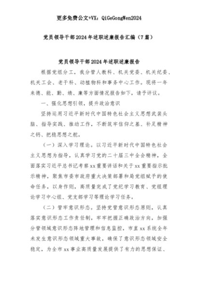 【七哥公文】2025年:(7篇)党员领导干部2024年述职述廉报告汇编+更多免费公文+VX:QiGeGongWen2024+更多免费公文+VX:QiGeGongWen2024