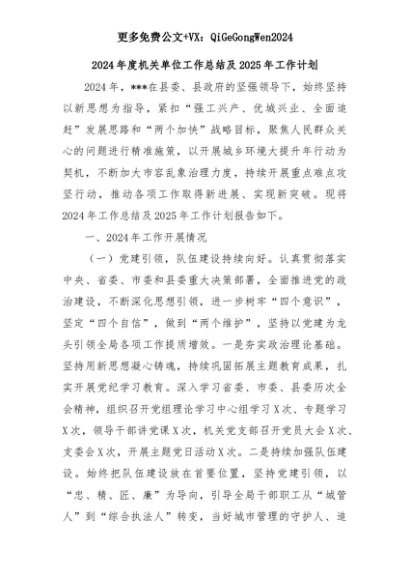 【七哥公文】2025年:2024年度机关单位工作总结及2025年工作计划+更多免费公文+VX:QiGeGongWen2024+更多免费公文+VX:QiGeGongWen2024