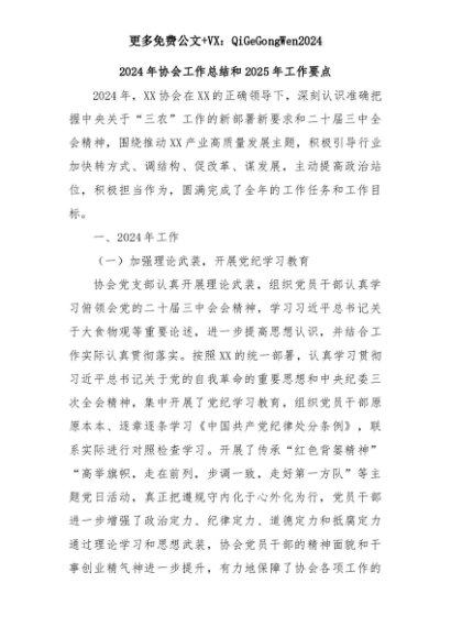 【七哥公文】2025年:2024年协会工作总结和2025年工作要点+更多免费公文+VX:QiGeGongWen2024+更多免费公文+VX:QiGeGongWen2024