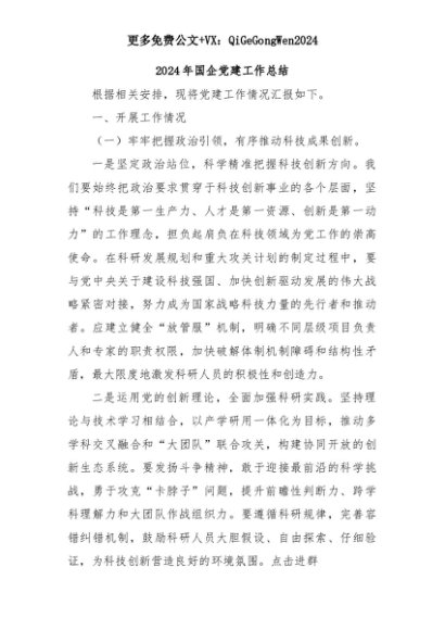 【七哥公文】2025年:2024年国企党建工作总结+更多免费公文+VX:QiGeGongWen2024+更多免费公文+VX:QiGeGongWen2024