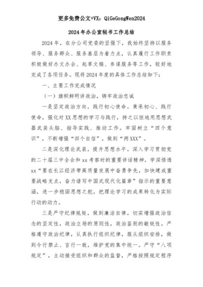 【七哥公文】2025年:2024年办公室秘书工作总结+更多免费公文+VX:QiGeGongWen2024+更多免费公文+VX:QiGeGongWen2024