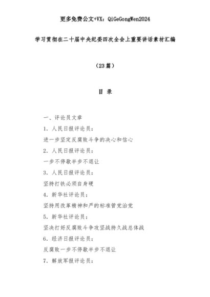 【七哥公文】2025年:(23篇)学习贯彻在二十届中央纪委四次全会上重要讲话素材汇编+更多免费公文+VX:QiGeGongWen2024+更多免费公文+VX:QiGeGongWen2024
