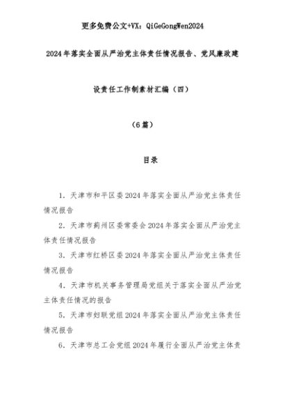 【七哥公文】2025年:(6篇)2024年落实全面从严治党主体责任情况报告、党风廉政建设责任工作制素材汇编(四)+更多免费公文+VX:QiGeGongWen2024+更多免费公文+VX:QiGeGongWen2024