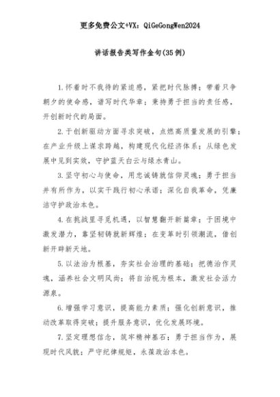 【七哥公文】2025年:(35例)讲话报告类写作金句+更多免费公文+VX:QiGeGongWen2024+更多免费公文+VX:QiGeGongWen2024