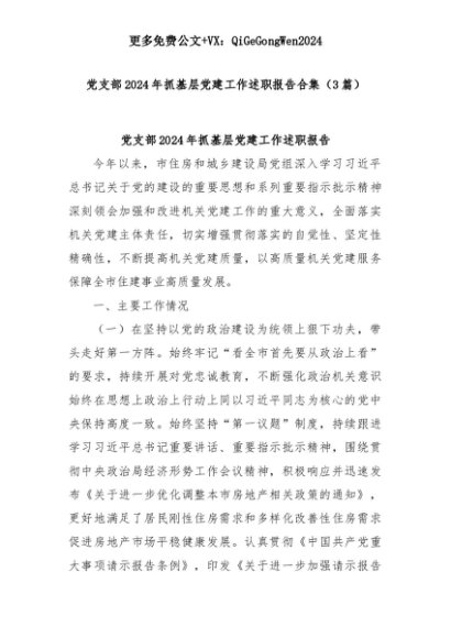 【七哥公文】2025年:(3篇)党支部2024年抓基层党建工作述职报告合集+更多免费公文+VX:QiGeGongWen2024+更多免费公文+VX:QiGeGongWen2024