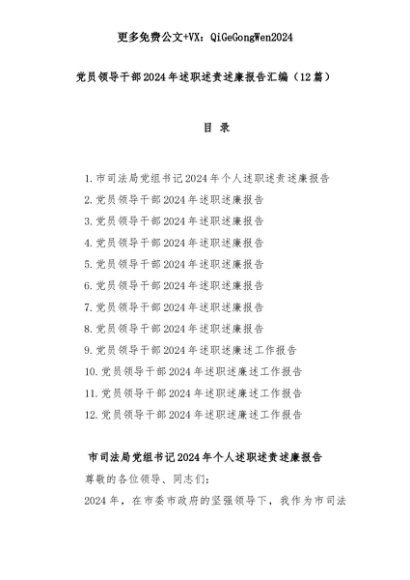 【七哥公文】2025年:(12篇)党员领导干部2024年述职述责述廉报告汇编+更多免费公文+VX:QiGeGongWen2024+更多免费公文+VX:QiGeGongWen2024