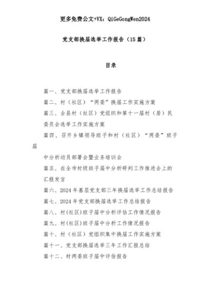 【七哥公文】2025年:(15篇)党支部换届选举工作报告+更多免费公文+VX:QiGeGongWen2024+更多免费公文+VX:QiGeGongWen2024