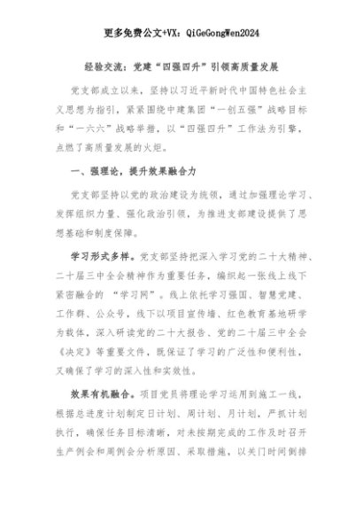 【七哥公文】2025年:经验交流:党建“四强四升”引领高质量发展+更多免费公文+VX:QiGeGongWen2024+更多免费公文+VX:QiGeGongWen2024